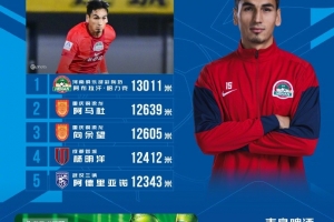 另外,阿马杜、向余望、杨明洋、阿德里亚诺分别排在二到五位。