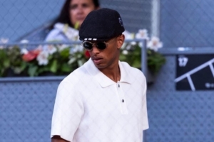 马德里网球公开赛正在进行中,媒体拍到贝林厄姆和女友阿什琳现身看台,现场观看比赛,贝林厄姆一身老钱风穿搭,个性十足。
