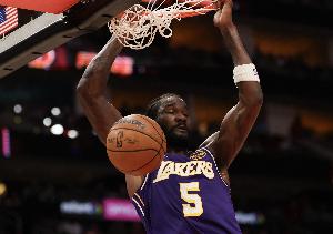 上半场,湖人中锋艾顿出场15分钟2投0中没得分,拿到4篮板2助攻1抢断1盖帽,有2失误,正负值+6。
