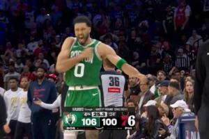 GIF-塔图姆右侧45度冷血三分!杀死比赛!激情捶胸庆祝!!!
