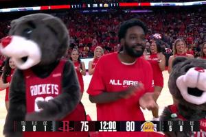 GIF-球迷投中中场三分~!!!赢了25000 ~!!