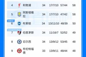 目前英超第六为布莱顿,但第六名到第十一名之间分差只有3分,多队均有争夺前六的希望。