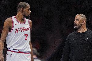 谈到KD缺阵,乌度卡说:“我们会依靠一些今年做到过的事情,回到我们在菲尼克斯和金州那两个客场的状态,看看当时我们是如何赢下比赛的,当时我们在KD缺阵的情况下打出了非常出色的篮球,我并不是说球员们已经习惯了他不在场上——因为他今年打了那么多比赛——但我们已经证明我们可以做到。”